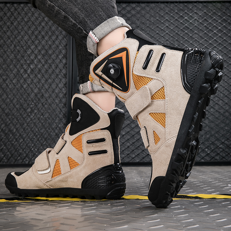 三本の面ファスナーベルトで足首をしっかりホールドするバイクブーツです。