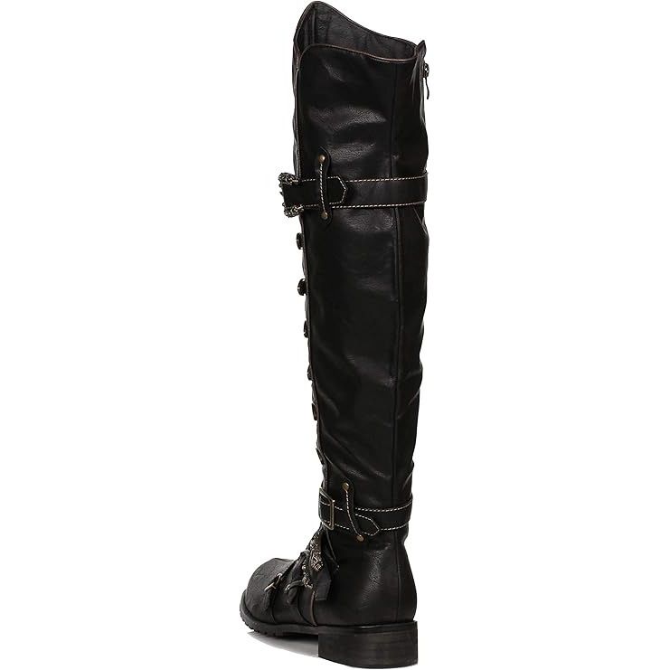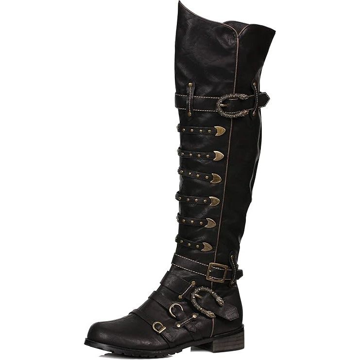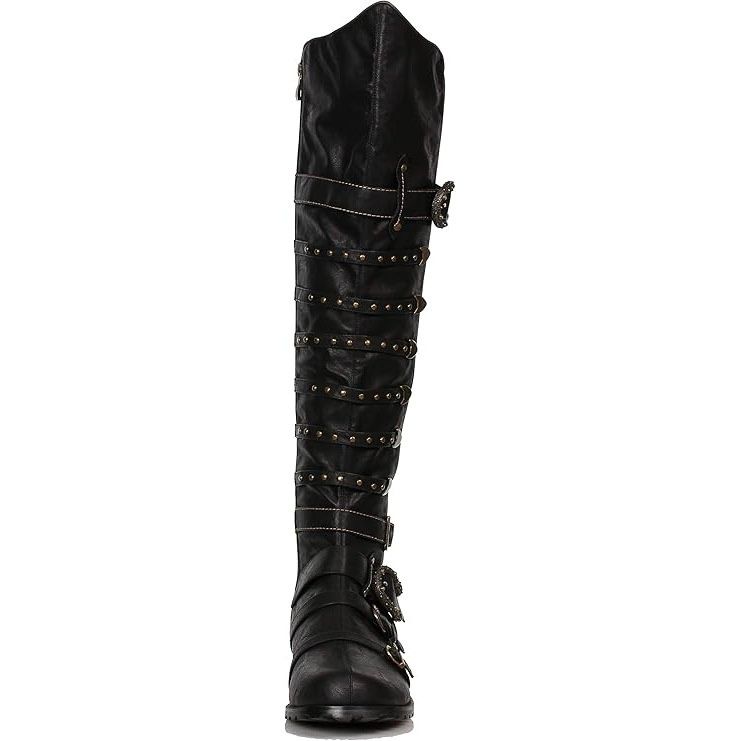 脚部全体に配された複数のベルトストラップと鋲飾りがハードな雰囲気を演出し、個性的なスタイルを実現します。